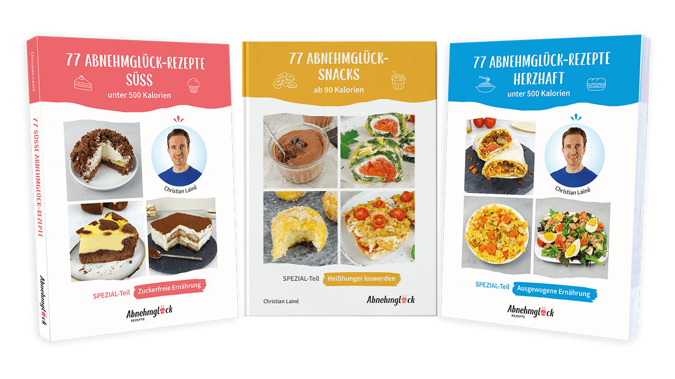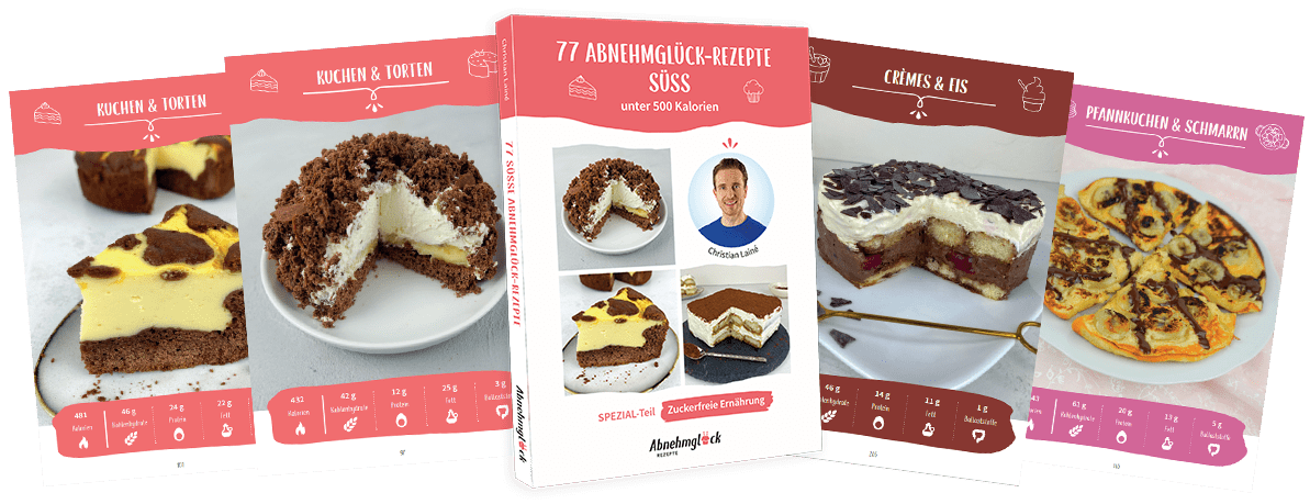 Also, komm jetzt ins Handeln und hol dir deine 77 süßen Abnehmglück-Rezepte, damit auch du endlich dein Abnehmglück findest!